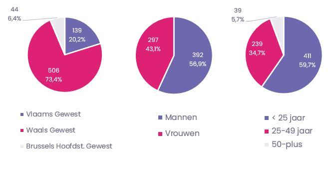 Van de 287.372 UVW-WZ in januari 2026 zouden in de loop van februari 2026 689 personen het einde van hun recht bereiken (653 met een inschakelingsuitkering en 36 met een werkloosheidsuitkering.) Dit zijn hun voornaamste profielkenmerken: