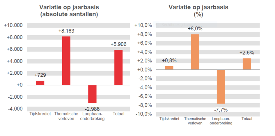 Daling bij de loopbaanonderbreking, stijgingen bij het tijdskrediet en de thematische verloven