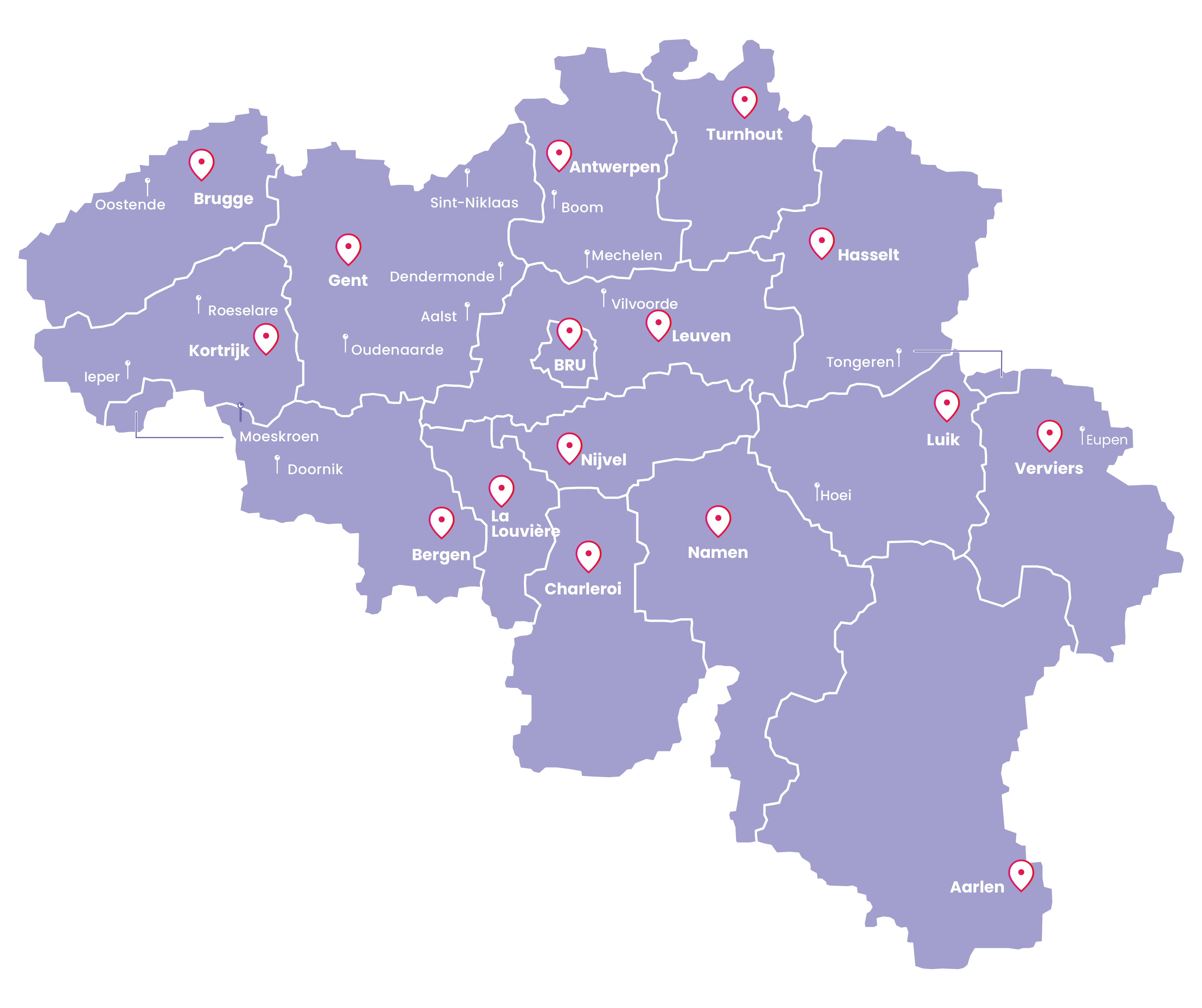 Op de andere plaatsen (in het klein op de kaart) worden hoofdzakelijk frontofficeactiviteiten verricht rond het onthaal en het informeren van de burger.