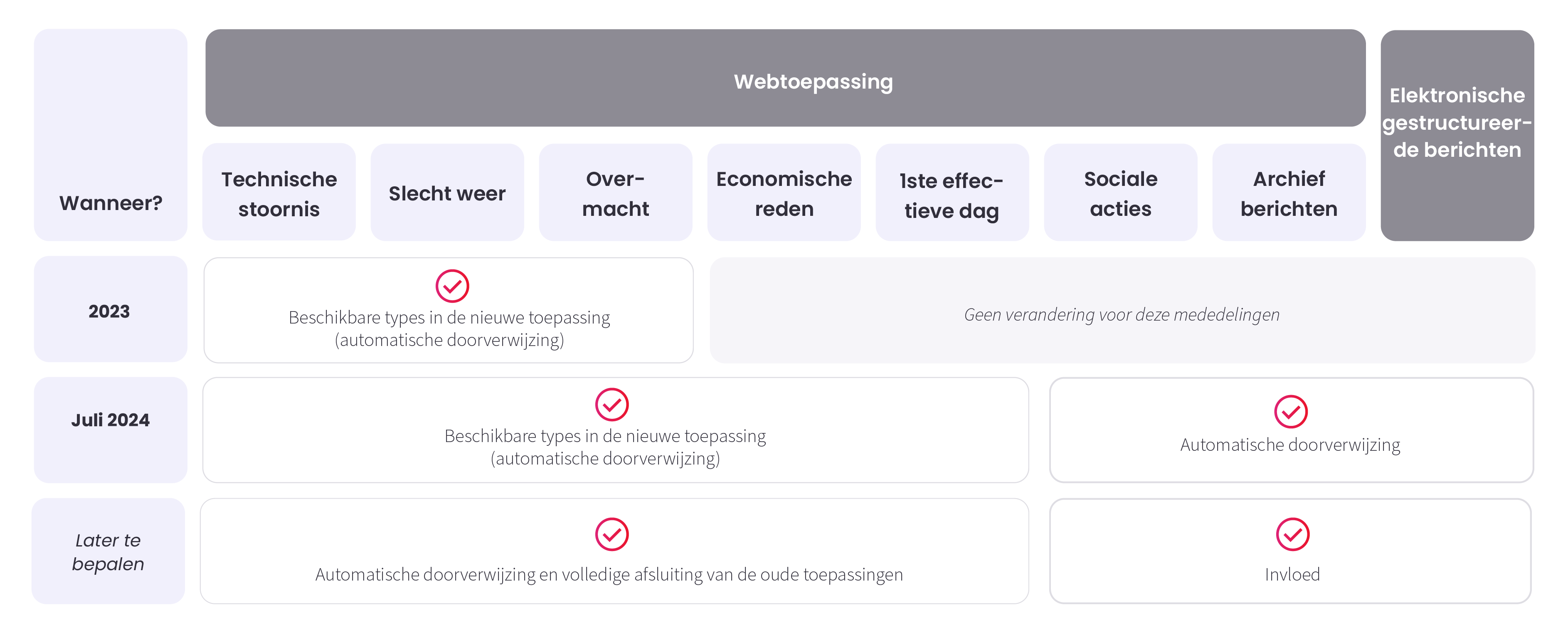 als het geselecteerde type mededeling al beschikbaar is in de nieuwe toepassing wordt u automatisch doorgestuurd;